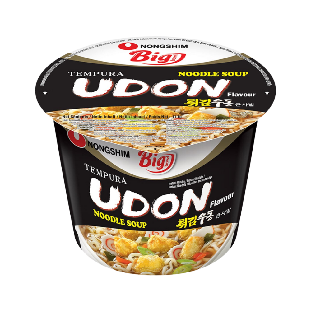 Удон – это белая паста с широкими нитями, приготовленная из пшеничной муки, соли и минеральной воды без добавления яиц. Ее текстура – пышная, мягкая и очень нежная. При производстве сублимированного продукта корейский производитель использует технологию сушки горячим воздухом, поэтому лапша сохраняет свою текстуру и свежесть.