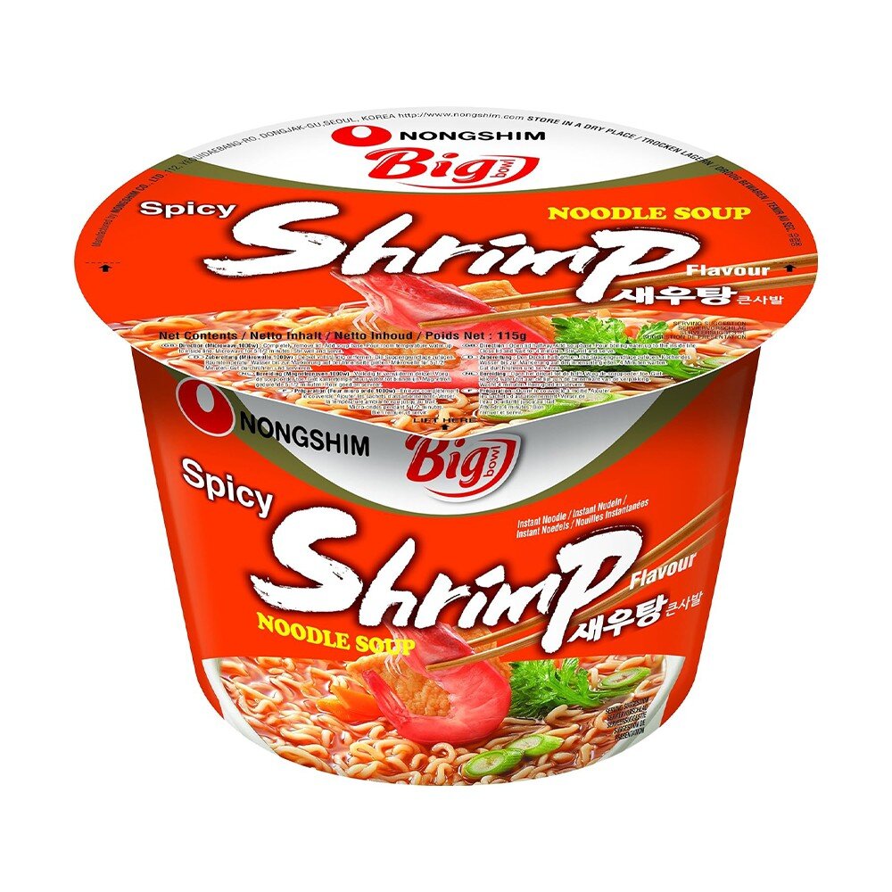 Корейская лапша быстрого приготовления Shrimp Nongshim со вкусом креветок – это хороший, сытный обед в удобном стакане. Настоящий праздник для любителей ароматных блюд корейской кухни. Горячий бульон с натуральными экстрактами обитателей моря и упругая пшеничная лапша поднимут настроение и надолго избавят от чувства голода.