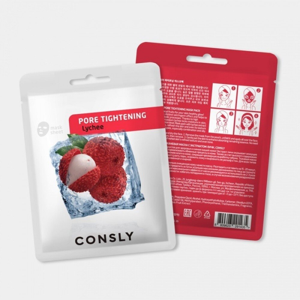 Поросужающая тканевая маска Lychee Pore-Tightening Mask Pack от бренда Consly идеальна для ухода за проблемной и тусклой кожей. Средство на тонкой тканевой основе пропитано нелипкой эссенцией, имеющей приятный фруктовый аромат. В составе средства — гиалуроновая кислота, вытяжка личи и аллантоин.